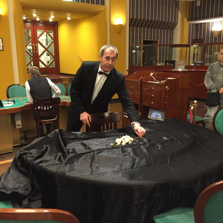 Drappo nero e orchidea bianca sul tavolo del Black Jack al Casinò di Sanremo, vinti 100mila euro