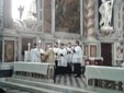 Subito dopo, innanzi al quadro della Divina Misericordia donato anni fa al Santuario da una fedele, don Giuseppe Puglisi ha celebrato una S. Messa solenne cantata (con sacerdote, diacono e suddiacono) nella forma straordinaria del Rito Romano (c.d. rito antico o tridentino) curata dal Gruppo Stabile. Ha colpito il numero dei chierichetti: sette ragazzi, di cui due piccoli, hanno servito Messa, a conferma che la liturgia ‘antica’ è ancora attuale e colpisce anche i giovani.
