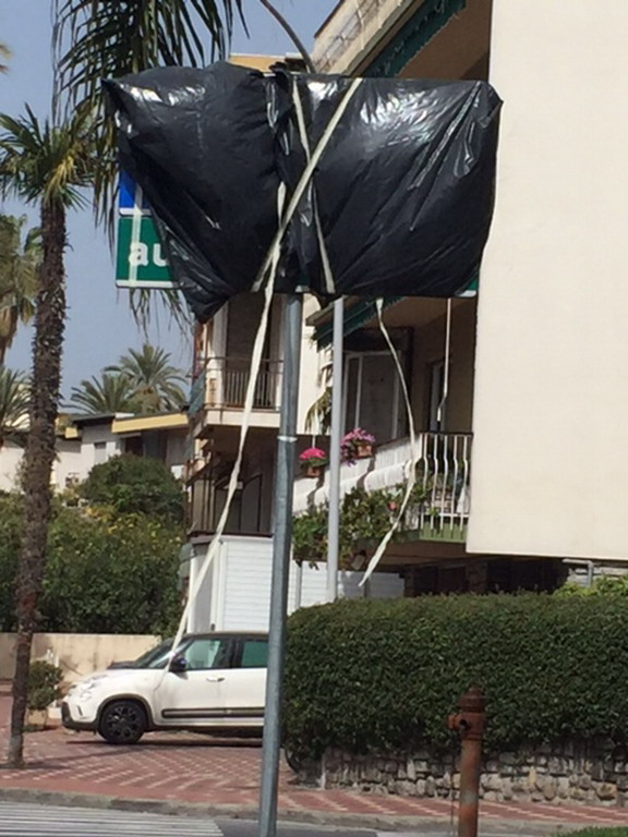 Interviene in questo modo il PD cittadino, che prosegue: “L’Amministrazione di Centro Destra ha consentito ad utilizzare i sacchetti della spazzatura per coprire alcuni cartelli stradali, predisposti in occasione del cambio di viabilità all’epoca dei lavori di ristrutturazione del ponte sul tratto della via Aurelia all’altezza dei Piani di Borghetto, lavori risalenti allo scorso anno. Quale testimonianza di decoro, anche semplicemente a livello simbolico, viene data, con tali atti di trascuratezza e di sciatteria, a danno della nostra città? A Bordighera l’attuale Amministrazione di Centro Destra rende definitivo ciò che è provvisorio e precario. Anche la rotatoria, allestita provvisoriamente all’epoca dei lavori del ponte sul tratto della via Aurelia, da provvisoria, è tutt’oggi ancora là dov’era un anno fa, a testimoniare la qualità e peculiarità del modus operandi dell’Amministrazione Pallanca fondata sulla dimenticanza, sulla rimozione, sull’abbandono e sul trascurare alcune zone della Città proferendo, contro ogni evidenza, che loro ‘sono l’Amministrazione ‘del fare’.”