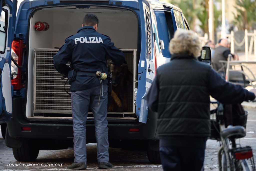 Questo pomeriggio blitz della Polizia in piazza Colombo a Sanremo. Gli agenti del nucleo prevenzione crimine di Genova con l’ausilio dell’unità cinofila hanno passato al setaccio la piazza.