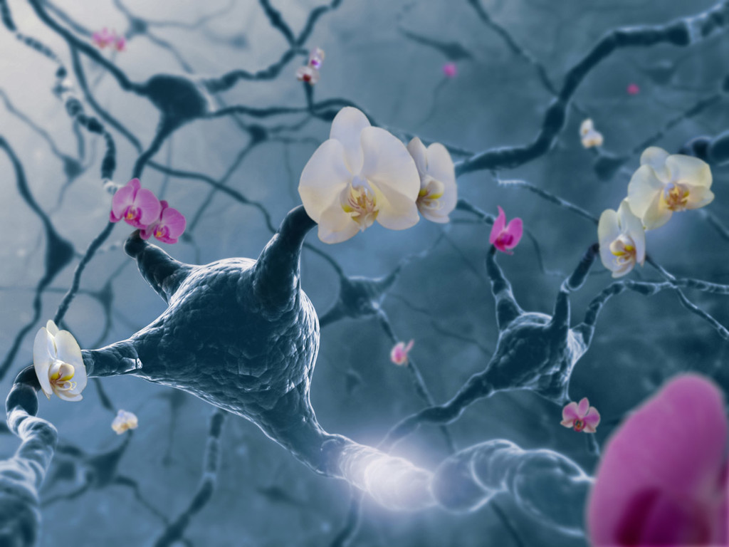 “L’idea da cui nascono i lavori di Aqua Aura è complessa: rendere visibile l’invisibile. Per realizzare le sue opere, l’artista, si serve di immagini catturate con il microscopio elettronico, quali cellule, virus, batteri, globuli bianchi e le innesta, da qui il titolo dell’esposizione ‘The Graft’ (L’innesto), su elementi della natura che fanno parte del nostro immaginario collettivo. I titoli delle sue opere ‘Monema’ ci aiutano a penetrare una realtà che ha in sé la capacità di evolversi: il monema è infatti l’elemento ultimo, indivisibile dell’esistenza, trasportandoci in un mondo metafisico. Nelle opere della serie ‘The Net’ la rete neuronale, simbolo dell’essere umano, interagisce con fiori giganti quali magnolie o orchidee. Gli scatti, attraverso la accurata gestione della luce, sfiorano la tridimensionalità assumendo così anche una valenza plastica e scultorea. Le immagini di Aqua Aura nascono da studi sulla fisica delle particelle, biogenetica, filosofia e psicologia della percezione”.