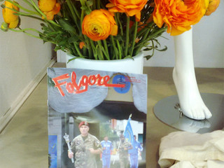 "Nell'occasione la Maison DAPHNÉ di Sanremo dedica una patriottica vetrina al corpo dei paracadutisti italiani esponendo tra i propri abiti di Haute Couture un paracadute, accompagnato dalla bandiera italiana, e non possono mancare i nostri fiori di Sanremo nelle sfolgoranti tonalità giallo arancio.