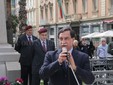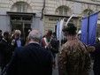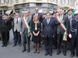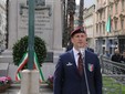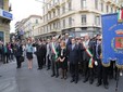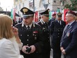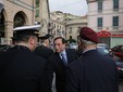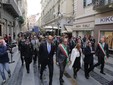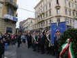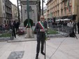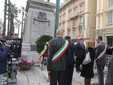Il corteo ha effettuato una breve sosta davanti al monumento ai Caduti sito tra via Roma e corso Mombello. Lì è stato suonato l'inno italiano, seguito dal silenzio e dagli interventi delle autorità. Oggi per la cerimonia erano presenti oltre ai massimi rappresentanti provinciali delle forze dell'ordine, anche il prefetto Silvana Tizzano ed il sottosegretario alla difesa Domenico Rossi, numerosi anche i rappresentanti delle istituzioni, in prima linea il sindaco Alberto Biancheri ma anche l'assessore regionale Gianni Berrino.