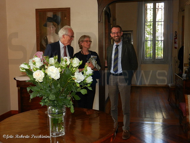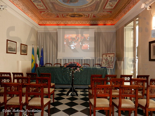 Presenti all'incontro l'assessore Anna Maria Asseretto e alcune eccellenze imprenditoriali di Sanremo, nel settore della moda e della floricoltura, sostenitori dell'iniziativa di Pecchinino delle Dirette con la Svezia per la Consegna dei Premi Nobel e dell'Associazione "Amici di Nobel": Barbara Borsotto della Maison "Daphné" che ha presentato il foulard creato nel 1983 in occasione del 150° anniversario della nascita di Alfred Nobel, un grande evento che coinvolse in quel periodo tutta la città, con la presenza di oltre trenta Premi Nobel, del Presidente della Repubblica Sandro Pertini, del Re di Svezia con i membri del comitato scientifico Internazionale e i dirigenti della Fondazione Nobel. Presente all'incontro anche l'ibridatore Tony Marchese, che ha presentato alcune delle sue creazioni, la Rosa Mystica, la Rosa Romanov, la rosa 'Prince Ranieri III' e il "Fiore dei Diritti Umani", una bella esposizione che ha destato molto interesse per la bellezza e varietà a tutta la delegazione svedese.