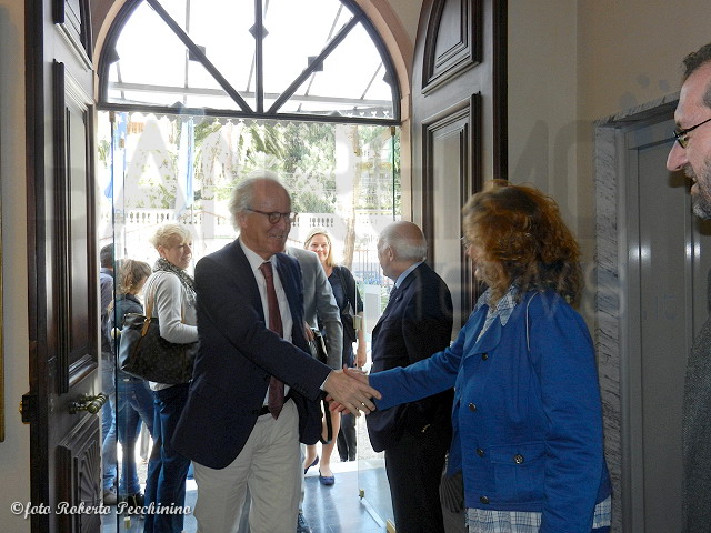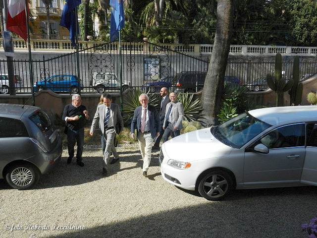Ad accogliere il direttore esecutivo Lars Heikensten, il Presidente della Provincia Fabio Natta, il dirigente Claudio Perato con alcuni dipendenti dello staff che gestiscono la villa. Il coordinatore dell'evento il Dott. Enrico Oliva ha presentato alla delegazione svedese il Presidente dell'Istituto Internazionale di Diritto Umanitario Fausto Pocar con il segretario generale la dott.ssa Stefania Baldini, il Cav. Uff. O.M.R.I. Roberto Pecchinino (promotore dell'Associazione "Amici di Nobel"e organizzatore da dieci anni delle dirette satellitari con Stoccolma per far vedere ai sanremesi tutta la Cerimonia della Consegna dei Premi Nobel), i sostenitori dell'iniziativa e futuri soci dell'Associazione "Amici di Nobel": il Presidente del Rotary Sanremo Hanbury Antonio Leoni con la moglie Laura, il Presidente di Circoscrizione Vincenzo Benza del Lions Club Sanremo Host, Maria Jhonsson (Istituto di Diritto Umanitario, da sempre collaboratrice con Pecchinino per le dirette con la Svezia e rappresentante della Comunità Svedese), il Dott. Alberto Guglielmi Manzoni( scrittore, storico e apprezzatissimo conferenziere, profondo conoscitore della vita di Alfred Nobel e relatore di successo per le conferenze sulla vita di Albert Schweitzer (teologo e organista tedesco, premio Nobel per la pace nel 1952), di Rita Levi Montalcini (scienziata italiana, premio Nobel per la medicina nel 1986).