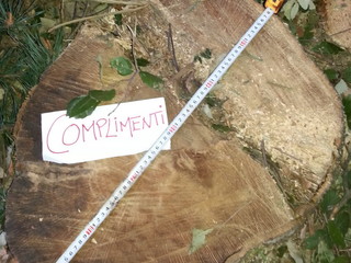 L'abbattimento, seocndo quanto riferito dai residenti, è avvenuto oltre il periodo consentito che scade il 10 aprile come da regolamento boschivo del corpo forestale dello Stato. La pianta misurava circa 60 cm di diametro e aveva una circonferenza ed un altezza ragguardevoli... unico esemplare in zona.