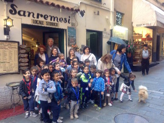 Per i bimbi della scuola ‘Santa Marta’, prosegue il viaggio nella storia commerciale di Sanremo. Questa mattina i bambini, accompagnati dalle loro maestre, il consigliere comunale Maria Giovanna Negro, che si è fatta promotrice di questo progetto, hanno iniziato la visita dallo showroom Borea di via Roma. Ai bimbi è stata mostrata anche la targa scultorea realizzata da Elio Markese per rendere omaggio alla figura del famosissimo Giuseppe “Pipin” Ferrari. La visita è proseguita anche presso il negozio di ottica Cresto e la maison d'alta moda Daphné di corso Matteotti e dalle Cantine Sanremesi di via Palazzo.