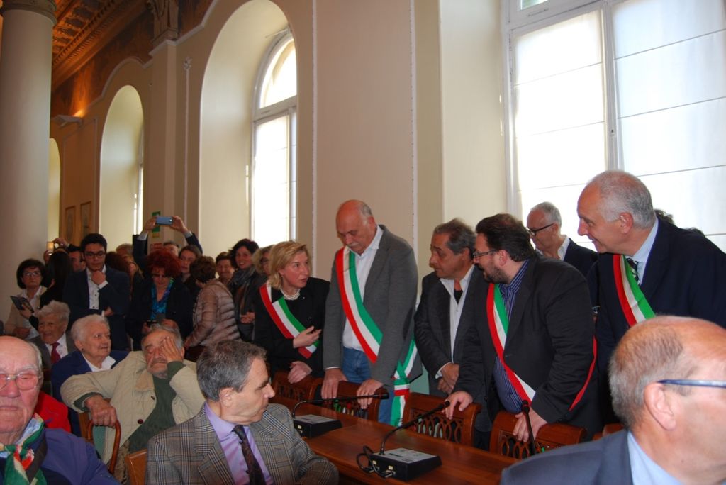 Questo pomeriggio, in occasione del 71° anniversario della Guerra di Liberazione e della Resistenza, presso la Prefettura di Imperia si è tenuta la cerimonia per la consegna delle “Medaglie della Liberazione”, conferite ai partigiani, agli ex internati nei lager nazisti, e ai combattenti inquadrati nei Reparti regolari delle Forze Armate. Sono state 63 le medaglie consegnate, tra emozioni, lacrime e sorrisi. Il Prefetto Silvana Tizzano ha specificato come fosse particolarmente importante che la celebrazione avvenisse proprio nella sala consiliare della Provincia, dove nel 1980 il Presidente Sandro Pertini, consegnò le medaglie d'oro al valor militare per l'attività partigiana.