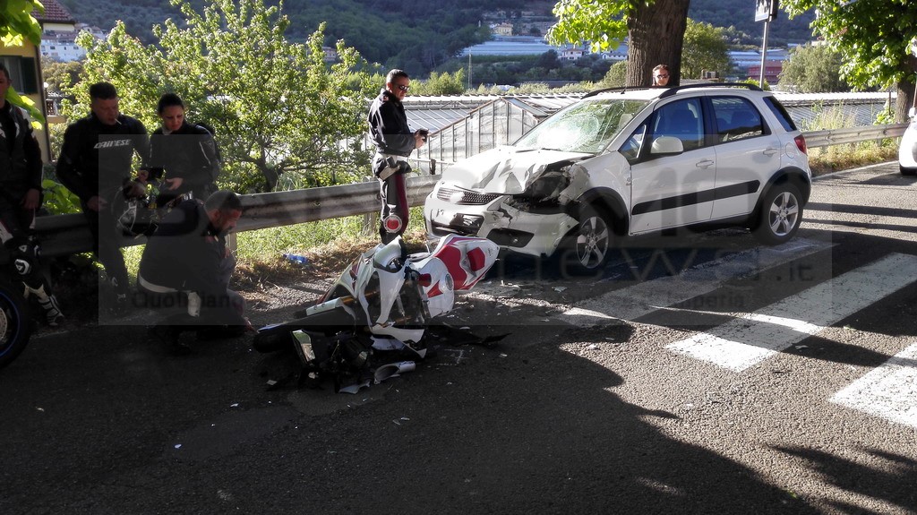 Nuovo incidente stradale, oggi pomeriggio sulla statale 20 del Colle di Tenda all’altezza di Porra, frazione di Ventimiglia. Una moto ed un’auto si sono scontrati per cause ancora in via d’accertamento.