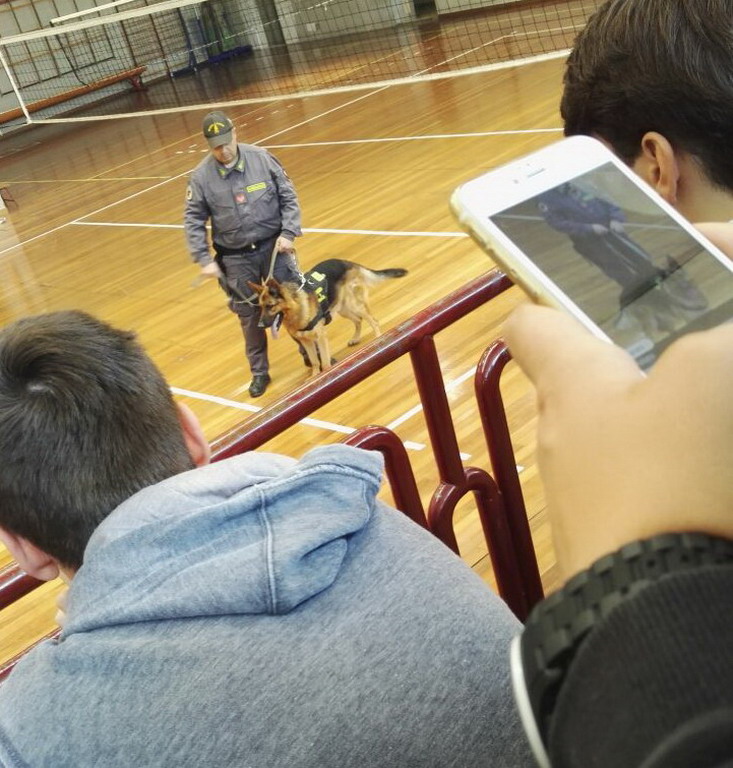 Il Dirigente Scolastico, Prof. G. Poggio ha ringraziato, a nome di tutti gli studenti, il Capitano Antonio La Rosa, il Tenente Gianluca Savoia, tutti gli Agenti della GdF, compresi i valorosi cani addestrati Zaffo e Bacon, che hanno conquistato i ragazzi, per la loro abilità e simpatia