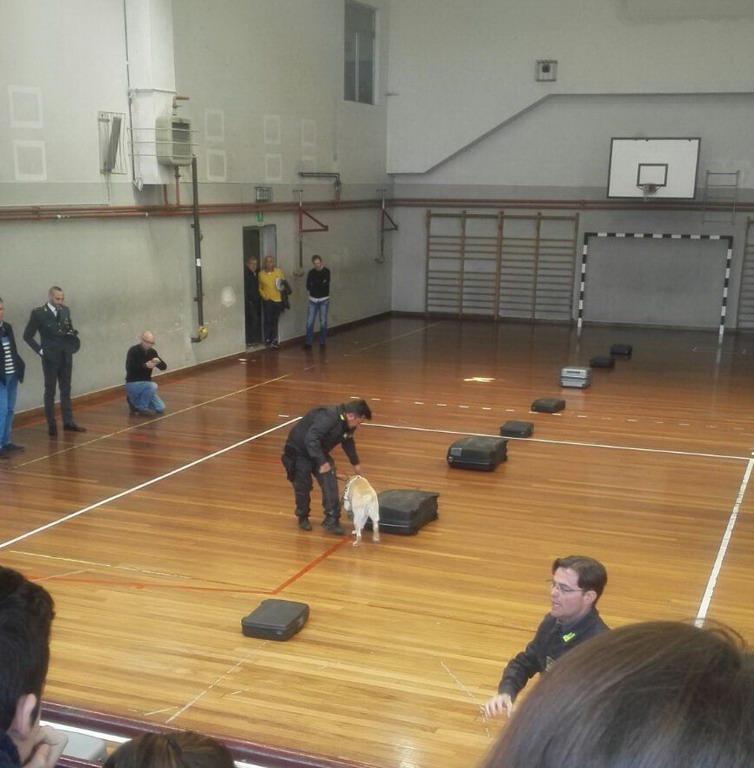Gli Agenti hanno illustrato ai ragazzi, attraverso un’interessante proiezione, tutti i rischi e le problematiche legate a comportamenti illeciti in relazione a evasione fiscale e sua ricaduta sui cittadini, contraffazione di merci e banconote e spaccio di droga, spiegando i gravi rischi che si possono correre. Gli alunni hanno mostrato grande partecipazione, sia nell’aula 20, dove hanno assistito agli interventi ed alla proiezione di filmati attuali ed interessanti, sia in palestra, dove i cani della Guardia di Finanza, hanno dato dimostrazione dell’abilità nell’individuare droga e banconote false.