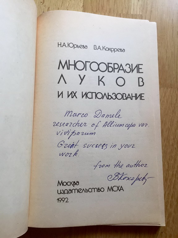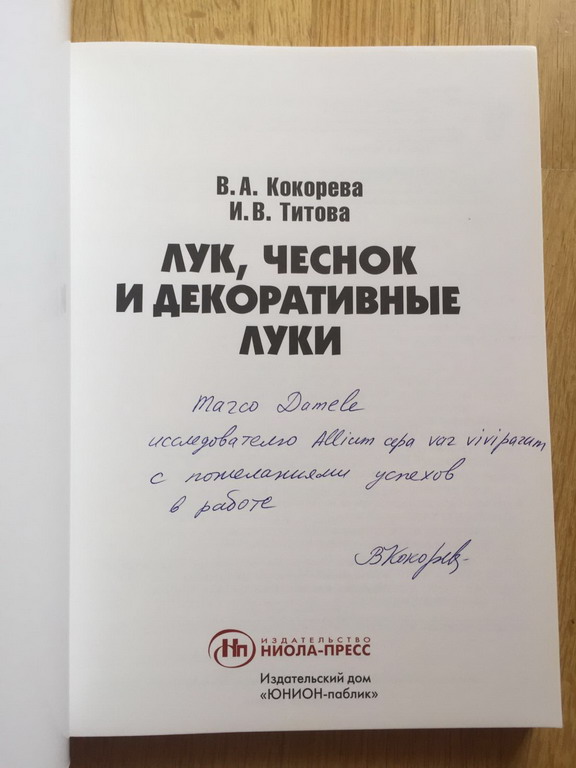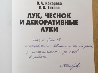 Valentina Kokoreva, PhD in Agricultural sciences, ex direttore scientifico del gruppo GAVRISH (il principale istituto russo nella produzione di ibridi vegetali) e ricercatrice alla stazione sperimentale vegetale della MTAA di Mosca, è autrice di tre libri dedicati alla cipolla e di due brevetti riguardanti il metodo della conservazione e la resistenza della cipolla alla peronospora, avendo curato in questi decenni numerose tesi e ricerche di scienziati sovietici e russi in Agricoltura.