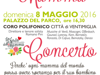 "Grazie al Presidente dell’Ass. Culturale Aniante-Lentini - si spiega nel comunicato - il Maestro Elio Lentini ha preso contatti con il direttore del Coro Polifonico Città di Ventimiglia - che vanta un ottimo livello di interpretazione dei brani presentati nei loro spettacoli, che si svolgono sia in Italia che in Francia è formato da 50 elementi, si fregia della direzione del Maestro Romano Pini, noto tenore eccellente pittore - e così si è potuto organizzare un concerto che si terrà presso il Palazzo del Parco di Bordighera messo a disposizione dal Comune che ha anche concesso il patrocinio e la collaborazione per la buona riuscita dell’evento anche perché la festa della mamma ha visto i suoi natali per l’Italia proprio a Bordighera e risale al 1956, quando Raul Zaccari, senatore e https://it.wikipedia.org/wiki/Sindacosindaco di Bordighera, in collaborazione con Giacomo Pallanca, presidente dell'https://it.wikipedia.org/wiki/Pianta_ornamentaleEnte Fiera del Fiore e della Pianta Ornamentale di Bordighera-Vallecrosia, prese l'iniziativa di celebrare la festa della mamma a Bordighera, la seconda domenica di maggio del 1956, al Teatro Zeni; successivamente la festa si svolse al Palazzo del Parco".