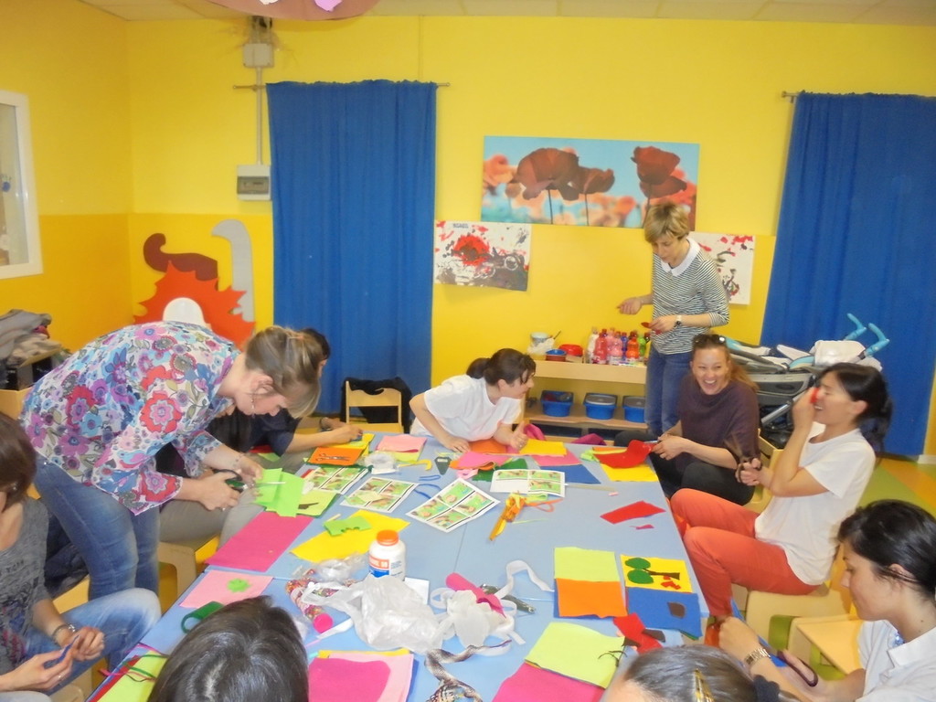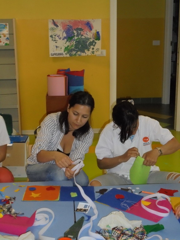 Nella seconda parte del pomeriggio, invece, si sono messe in gioco e attraverso un laboratorio creativo hanno realizzato un libro per i loro bambini composto da vari tessuti: pannolenci, stoffe, lana, ecc…Questi libricini sono stati pensati dall’equipe educativa e dalle mamme per stimolare e dare valore alla lettura come attività educativa, nel potenziamento della fantasia e come funzione didattica.