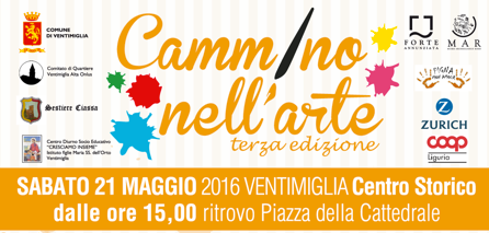 Sabato prossimo, nel centro storico di Ventimiglia a partire dalle 15, si terrà la terza edizione del Cammino nell'arte, manifestazione dedicata a tutti i bambini che avranno voglia di giocare e divertirsi con attività creative e stimolanti.