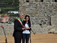 Grande partecipazione, questo pomeriggio da parte di autorità e cittadini, all’inaugurazione del restauro del Castello di Taggia. Quasi tutti partiti da piazza Gastaldi a Taggia, i partecipanti sono saliti a piedi al Castello, posto sulla parte più alta dell’abitato, da dove domina la piana agricola di Taggia e da questo luogo lo sguardo spazia dal monte Faudo al mare.