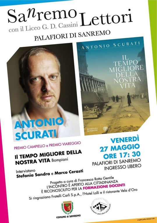 "Accostando i singoli ai grandi eventi, attraverso documenti, fotografie e lettere, ricordi famigliari e memoria collettiva, Antonio Scurati riesce così a resuscitare il nostro passato. Il programma di “Sa(n)remo lettori” ha coinvolto prestigiosi nomi della letteratura -Dacia Maraini, Giulio Guidorizzi, Maurizio De Giovanni e Niccolò Ammaniti - e ha avviato collaborazioni a livello nazionale con il “Premio Strega Giovani”, il “Premio Scriviamoci 2016”, il “Concorso Campiello Giovani”. L’appuntamento di venerdì 27 maggio è a ingresso libero" - ricordano gli organizzatori.