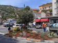 Al centro dell’aiuola di 50 metri quadri un bellissimo ulivo e la riproduzione di un piccolo muro a secco, elementi fortemente simbolici del nostro territorio. Sul tronco nodoso dell’ulivo una rosa rossa rifiorente e rampicante. Ai piedi dell’ulivo un trionfo di profumi e di verde: piante di lavanda, rosmarino, salvia e melograno accostate ai vivaci colori di piante esotiche tipiche di giardini storici sanremesi, come streptosolen, agavi, gazziane e lantane. Nessun prato inglese alla base, ma frammenti di roccia lavica dal colore ruggineo, che risaltano i colori di fiori e piante.