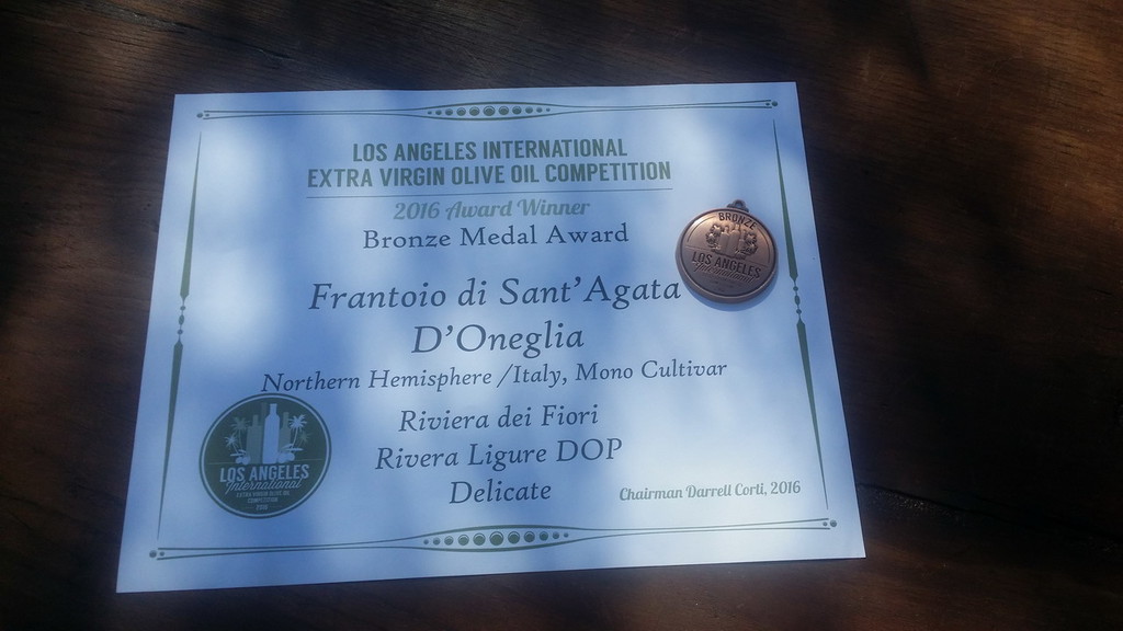 L'attento impegno di un'azienda come Sant'Agata d'Oneglia si impone ancora, dopo un altro risultato con la linea biologica al BIOL di Lecce. Si impone dunque in USA con la DOP Riviera Ligure nella menzione Riviera dei Fiori convincendo a confronto con le produzioni proprie di un segmento gustativo che si confronta spesso con l'olio della Casaliva del Garda. Olio extravergine di olive, fruttato leggero, delicate, suadente, dolce. Equilibrato, ma in grado esprimere anche equilibrio potente ed emozionale. Un riconoscimento che va a tutti coloro I quali credono nell'olivicoltura di qualità, nella realtà di una tracciatura del percorso del prodotto e nel rispetto del pubblico, corretto ed esigente quando si tratta di alimentarsi volendosi bene. Con cura, con amore per sé stessi. E si parla anche di un riguardo a tutti coloro I quali lavorano salendo e scendendo I gradoni di pietra dei terrazzamenti liguri, incuranti di fatica ed equilibri precari. Premi come questi sono un inno alla vitalità di un territorio olivato plurisecolare ed alla sua gente. Gente che ama il suo territorio. Glielo si sente dire: "lo voglio bene alle mie fasce". Si traduce dal dialetto. Gente che non molla mai, come ci conferma il nume tutelare del Frantoio di Sant'Agata di Oneglia, Antonio Mela: "Siamo contenti. É una ulteriore conferma del valore del nostro impegno, anzi, della nostra passione e del nostro obbligo morale nei confronti del territorio e dei nostri padri". Peccato solo non ascoltarlo dal vero, da queste righe: parole sommesse, quasi timide. Ma di forte portata educativa.
