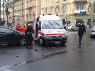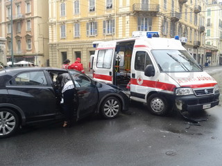 Sanremo: auto si scontra contro un'ambulanza. Curioso e fortunatamente senza gravi conseguenze, incidente in via Roma