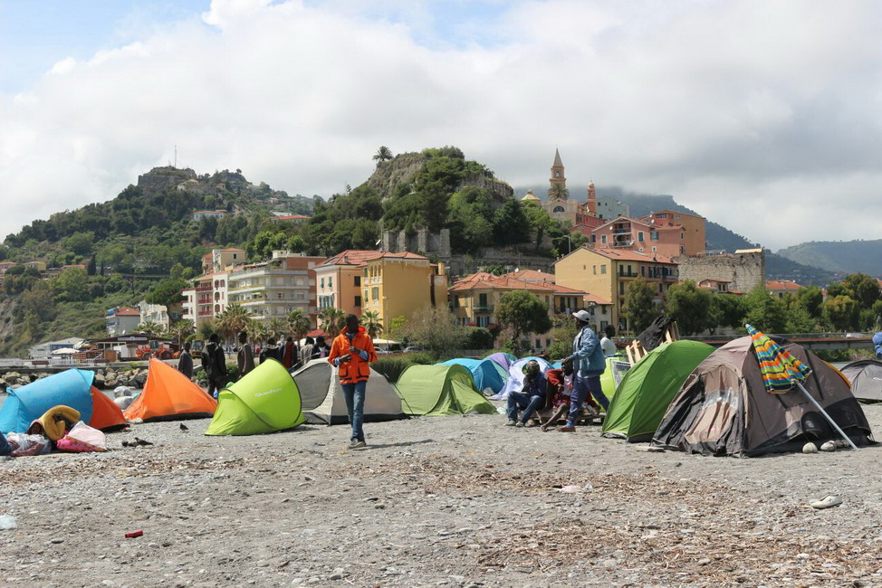 I migranti si spostano alla foce del Roja. Pochi minuti fa, circa 250 tra migranti e attivisti cosiddetti no borders, si sono spostati dal lungo fiume alla foce dove hanno allestito un nuovo accampamento.