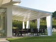 CHIUSURE LATERALI: "RASO", l'unica tenda verticale parte integrante della struttura che la ospita. Grazie ai tessuti trasparenti, filtranti o oscuranti offre la protezione e la luminosità desiderata, scomparendo completamente nella struttura quando è chiusa.