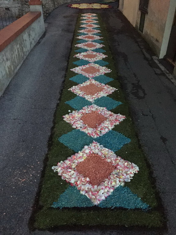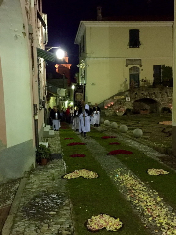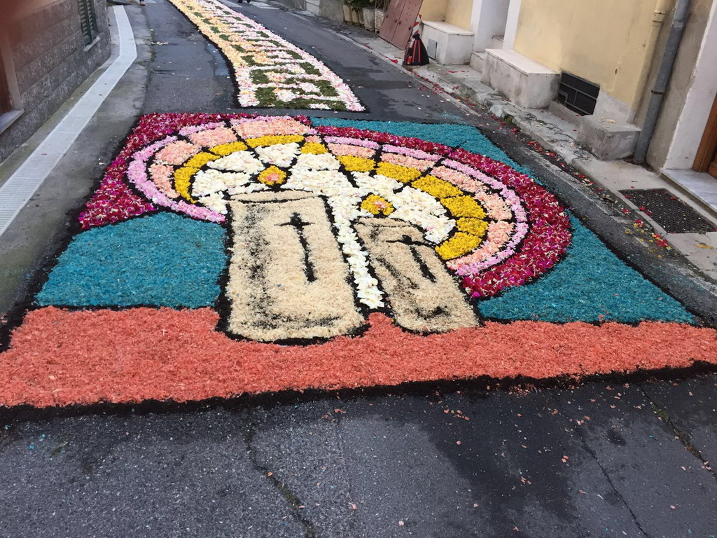 "Nonostante la pioggia della mattinata e il forte vento della prima parte del pomeriggio, grazie all'aiuto di tantissimi volontari si è comunque conclusa in modo ottimale l'Infiorata del Corpus Domini nel borgo medievale di Diano Castello". Sono soddisfatti i soci del Gruppo Infiorata Via delle Torri che spiegano: “Le decorazioni si sono sviluppate ininterrottamente per gli oltre 500 metri del percorso della processione che ha attraversato tutto il centro storico, con un susseguirsi continuo di greche decorate, rosoni e immagini sacre. Grande è stata l'affluenza di visitatori sia durante le fasi preparatorie e di allestimento, sia durante la processione.