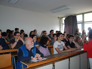 Nel momento in cui siamo ormai orfani della vecchia dimora, che è il De Amicis, abbiamo ritenuto doveroso da parte di tutti, dedicare la nostra aula, che in questo momento è l'aula in cui accogliamo le manifestazioni e le conferenze che si tengono in istituto, a Renato Dulbecco. I ragazzi hanno portato avanti un progetto di ricerca fotografica, perché ci sono delle immagini che riguardano le tappe più importanti della vita di Renato Dulbecco, ma che, mi auguro, col passare degli anni possa proseguire e lasciare a queste giovani generazioni imperiesi, e futuri italiani, una traccia indelebile che è quella che dall'umanesimo nasce la scienza e nella scienza si parla di umanesimo, non c'è cioè separazione tra i saperi. Questo è il messaggio più grande che stiamo dando ai nostri giovani".
