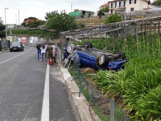 Sanremo: auto fuori controllo in via Padre Semeria, il mezzo si ribalta e finisce in una campagna