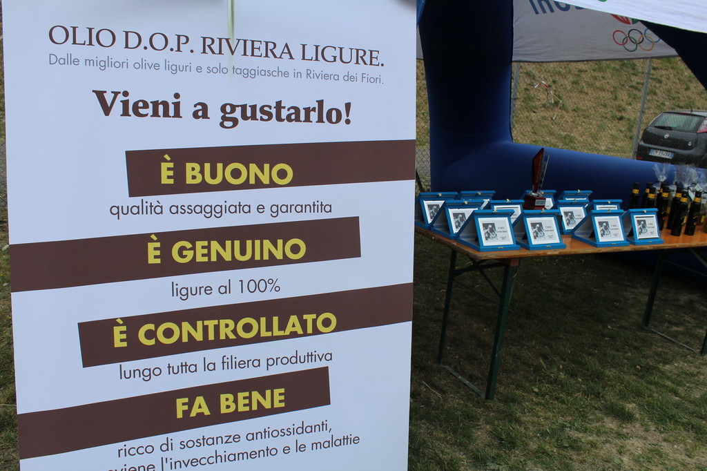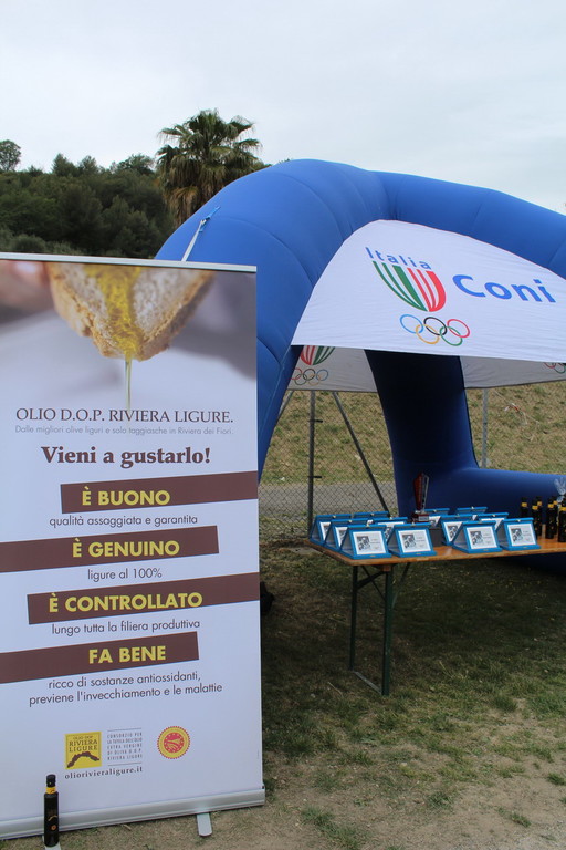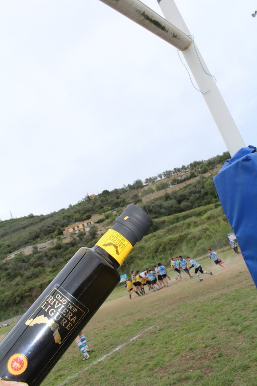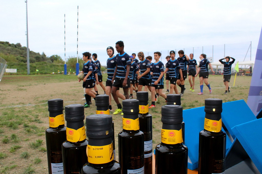 "Provincia di Imperia, culla dell'olio DOP Riviera Ligure nella menzione Riviera di Fiori. Consorzio per la tutela dell'Olio DOP con le bottiglie prodotte dall'oliveto condotto direttamente nel vocato territorio di Lucinasco. Provincia di Imperia da più di 40 anni terra di rugby e da quasi 10 anni con un progetto targato Imperia Rugby, tale però da superare le barriere ideologiche e campanilistiche tipiche di altri sport: esiste infatti una franchigia provinciale nel campionato nazionale di CI e un progetto scolastico di ampio raggio. Un oasi di sport sì duro e di collisione, ma formativo, nel fisico e nelle coscienze delle giovani generazioni. Uno sport che insegna a soffrire, ad aiutarsi ed a rispettare il proprio corpo, gli avversari, le regole, l'arbitro. E uno spazio, quello del campo di rugby 'Pino Valle' di Imperia che da tempo ospita squadre deN'ambito norditaliano, sia a livello seniores che soprattutto giovanile. E, dunque, veicolo di primo livello per far conoscere un olio di provenienza certa, certificato e garantito, il DOP Riviera Ligure. Prodotto da chi, per tenacia, passione e voglia di lottare, è proprio come un rugbista. Ecco che dunque le bottiglie del Consorzio sono andate in omaggio alle squadre che hanno partecipato ai due tornei giovanili imperiesi di primavera.