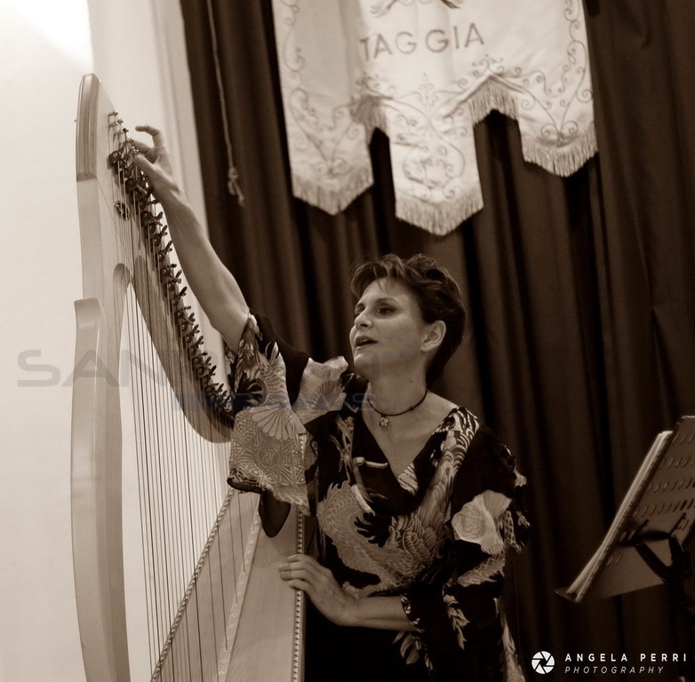 Tatiana Donis, importante arpista italiana, ieri sera a Villa Boselli, con un concerto all'arpa celtica, ha chiuso la due giorni organizza insieme all''Associazione Italiana dell’Arpa' come anteprima della rassegna dedicata a questo strumento che si svolgerà nel restaurato castello di Taggia il 4-5-6 agosto.