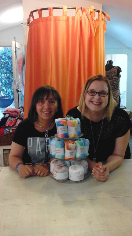 E' giunto alla quinta giornata il Festival dedicato al filato, maglia e uncinetto di Santo Stefano al Mare, che questa sera ha ospitato una vera guest star del settore: Valentina Cosciani, nella foto posa assieme a Emilia di My Emy, che in collaborazione con Woodoo Star ha ideato e organizzato l'evento.