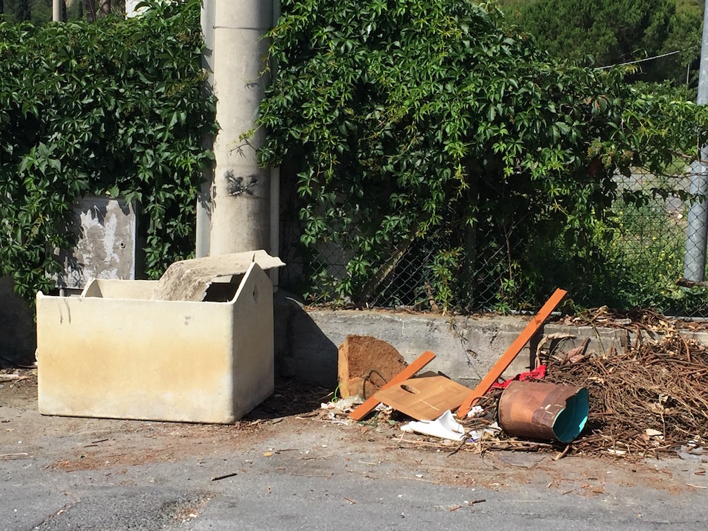 Proprio nella via, in prossimità di alcuni bidoni della spazzatura, da qualche tempo qualcuno ha lasciato alcuni materiali di scarto di vario genere che non dovrebbero trovare spazio a lato o dentro i cassonetti.
