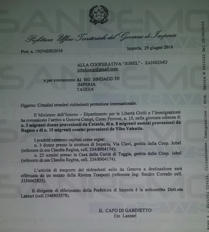 Taggia: sono 11 donne e non 23 uomini come disposto dal Ministero i migranti arrivati all'ex ospedale di carità