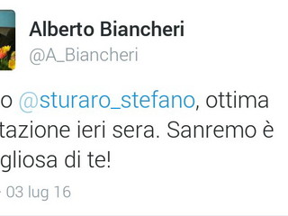 “Bravo Stefano Sturaro per l’ottima prestazione di ieri sera. Sanremo è orgogliosa di te”. Poche parole ma ben definite come l’epoca dei ‘tweet’ impone, dal Sindaco di Sanremo Alberto Biancheri su uno dei tanti social, per celebrare la presenza del suo concittadino, ieri sera a Bordeaux, nei quarti di finale degli Europei di calcio.