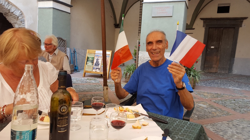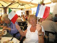 La Festa nazionale francese del 14 luglio è stata ben celebrata a Ventimiglia e in Val Nervia dal gruppo congiunto dell'Alliance francaise di Cuneo con la Presidente prof.ssa Manuela Vico e dell'Associazione Europea "Amici della Francia" presieduta dal dott.Eduardo Raneri , proseguendo una bella tradizione iniziata cinque anni fa. Nella tarda mattinata ha conseguito un buon successo la visita guidata con la giovane Sara dell'area archeologica e antiquarium dell'Antica Città di Albintimilium in zona Nervia; non sono mancate le foto-ricordo e l'invito a ritornare in zona appena conclusi i lavori nel Teatro romano; il pranzo conviviale è stato consumato in lieta compagnia nel Centro storico di Dolceacqua per i 25 partecipanti che ritroviamo nella foto di gruppo scattata dal giovane Gianluca prima di deliziarsi con le immagini,suoni e colori delle "Recondite armonie" e delle "Dolomiti del Brenta" proposte dal Visionarium di via Doria.