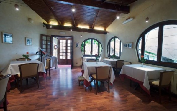 Dalla grande sala interna si può godere di un’impareggiabile panorama e nella bella stagione si può mangiare in terrazza.