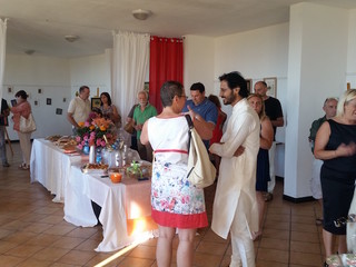 Nella prestigiosa cornice di una Sala che offre un panorama mozzafiato sulla Val Verbone e addobbata in elegantissimo stile indiano da Roberta Moscetti che ha saputo abilmente ricreare con profumi d'incenso, bambu neri e ninfee un ambiente familiare all'artista, si è svolta con un buon successo di pubblico l'inaugurazione della mostra che sarà visitabile sino a domenica 31 Luglio, rimanendo aperta quindi anche durante la settimana del Perinaldo Festival e arricchendo ulteriormente quell'offerta turistica per il pubblico che avrà il piacere di recarsi in visita a Perinaldo.