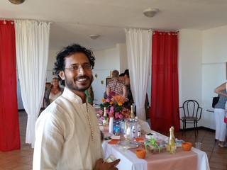 Soddisfatto l'artista, che senza mai tirarsi indietro, in inglese forniva spiegazioni sulle sue opere, davvero uniche sia per la realizzazione minuziosa dei particolari ma anche per i materiali, in quanto utilizza carta antica o antiche cartoline indiane piuttosto che ossa di cammello dipingendole con pigmenti assolutamente naturali con finissimi pennellini. Gli intervenuti hanno anche potuto assistere alla firma di alcune opere osservandone la tecnica di realizzazione.