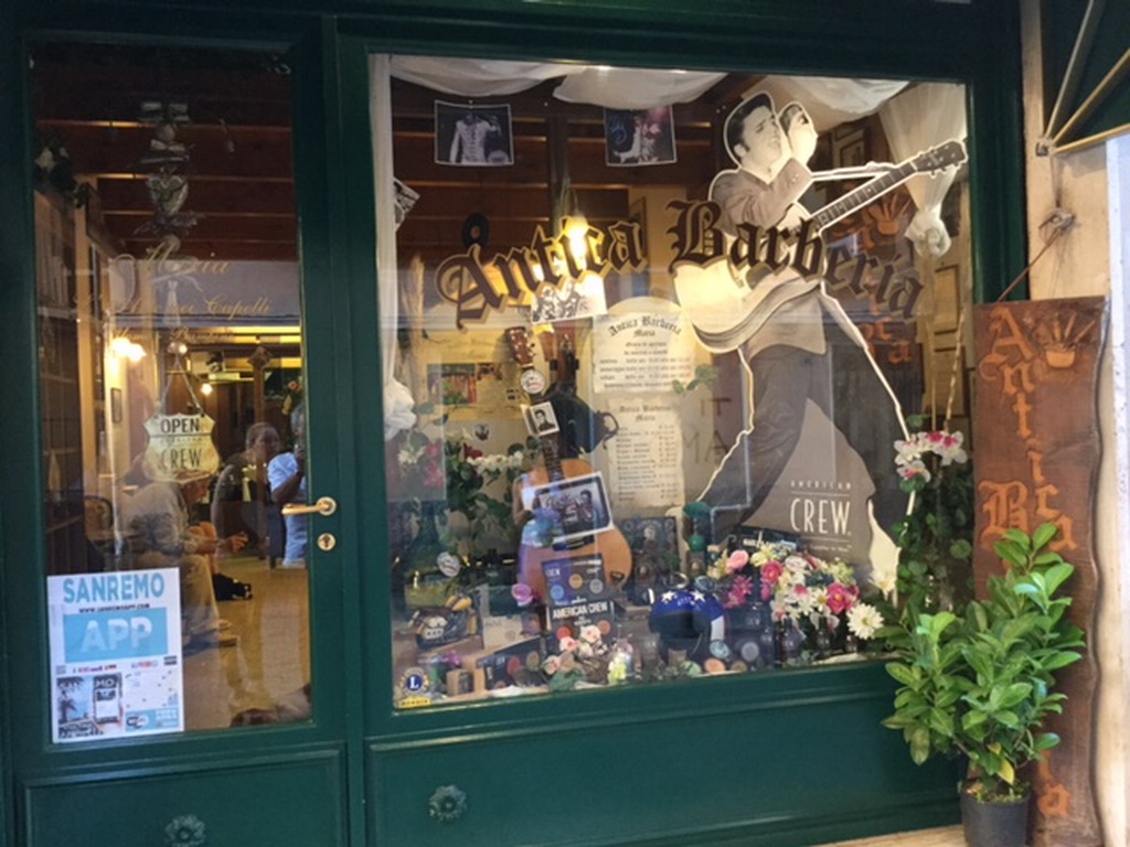 Per un mese l’Antica Barberia renderà omaggio a Elvis, con fotografie e oggetti che ricordano il leggendario cantante, le sue canzoni e i suoi successi musicali, saranno diffusi all’interno della Barberia, sino al 16 agosto. La vetrina è stata preparata e allestita dalla Visual Merchandiser Cetty Parrino, e gli oggetti in parte sono stati offerti dalla “Old Skull Kustom” di Sanremo.