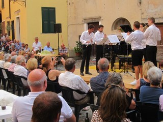 Con un concerto straordinario lungamente applaudito dal numeroso pubblico si è conclusa la V edizione del Festival dell’Alta Val Nervia, promosso dall’associazione “Amici della musica e dei sapori dell’Alta Val Nervia” in collaborazione con i Comuni di Castel Vittorio, Dolceacqua e Pigna. Per quattro giorni un gruppo di dieci musicista danesi di fama internazionale si sono esibiti nelle piazze più belle dei paesi con un repertorio molto vario di canti e brani dalla musica classica al jazz. Per la serata conclusiva nella splendida piazza centrale di Castel Vittorio si è tenuto un concerto durato oltre due ore con la presenza di tutti gli artisti, che sono stati lungamente applauditi dal pubblico numeroso, che comprendeva anche la folta comunità danese presente nel paese.