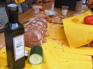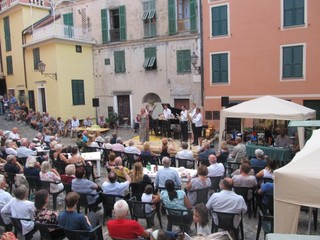 Prima del concerto per permettere ai partecipanti al Festival di apprezzare le eccellenze gastronomiche del territorio, la piazza ha ospitato un simpatico mercatino con i prodotti DOP e DECO dell’Alta Val Nervia dall’Olio extravergine di oliva di montagna ai fagioli bianchi di Pigna, dai formaggi dell’azienda Iaria di San Giovanni dei Prati alle tume dell’azienda “le caprette del parco “ di Pigna e non poteva mancare l’ottimo Rossese della Tenuta Anfosso e le specialità preparate dalla locale proloco.