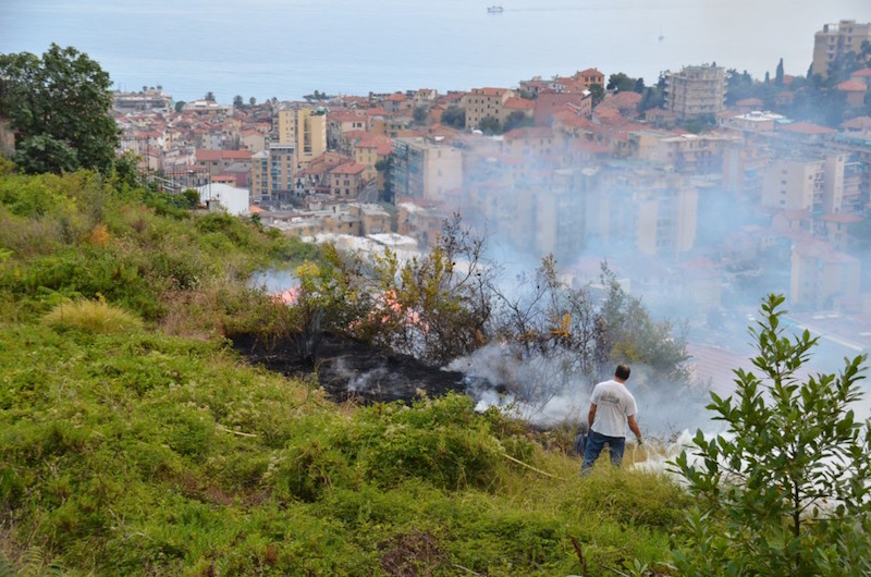 Incendio in atto sulle alture di Sanremo. Le fiamme si sono sviluppate intorno alle 18.15 nella zona sopra Madonna della Costa. Sul posto stanno operando i Vigili del Fuoco ed i volontari delle abitazioni circostanti.