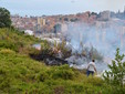 Il rogo ha interessato una zona tra le campagne in mezzo ad alcune villette sulla collina che si affaccia sulla città.