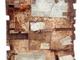 “Un elenco infinito di materiali scartati, raccolti nelle cantine e nella terra: strumenti, ghiaia, cenere, attrezzature da vino o olio, qualunque cosa trovata che possa essere interessante. L'artista assembla i frammenti dimenticati dando loro voce e compone intere frasi per permettere finalmente che gli oggetti raccontino le loro vite passate. Le tracce dell’uso non sono nascoste o eliminate, l’ artista con il suo personale e unico processo di trasformazione dei frammenti celebra e conserva la loro storia. Il ché consente allo spettatore di sperimentare l’autenticità e di unirsi all'artista nel celebrare con lui le tradizioni universali della gente di Borgomaro.