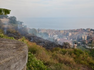 Incendio in atto sulle alture di Sanremo. Le fiamme si sono sviluppate intorno alle 18.15 nella zona sopra Madonna della Costa. Sul posto stanno operando i Vigili del Fuoco ed i volontari delle abitazioni circostanti.