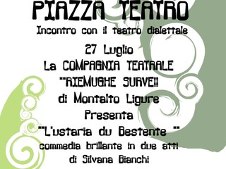 Domani sera, 27 luglio, a Santo Stefano al Mare nell'ambito della rassegna "Piazza Teatro”, la compagnia di teatro dialettale "Riemughe Surve" di Montalto Ligure presenta: L'ustaria du Bestente commedia brillante in due atti di Silvana Bianchi.