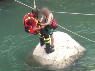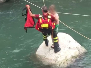 Il bambino era riuscito a trovare appiglio e riparo su un grosso scoglio al centro del fiume da dove non riusciva a spostarsi.