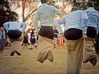 Anche gli adulti si trovavano spesso coinvolti....la corsa nei sacchi talvolta toccava a loro...