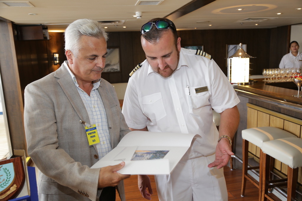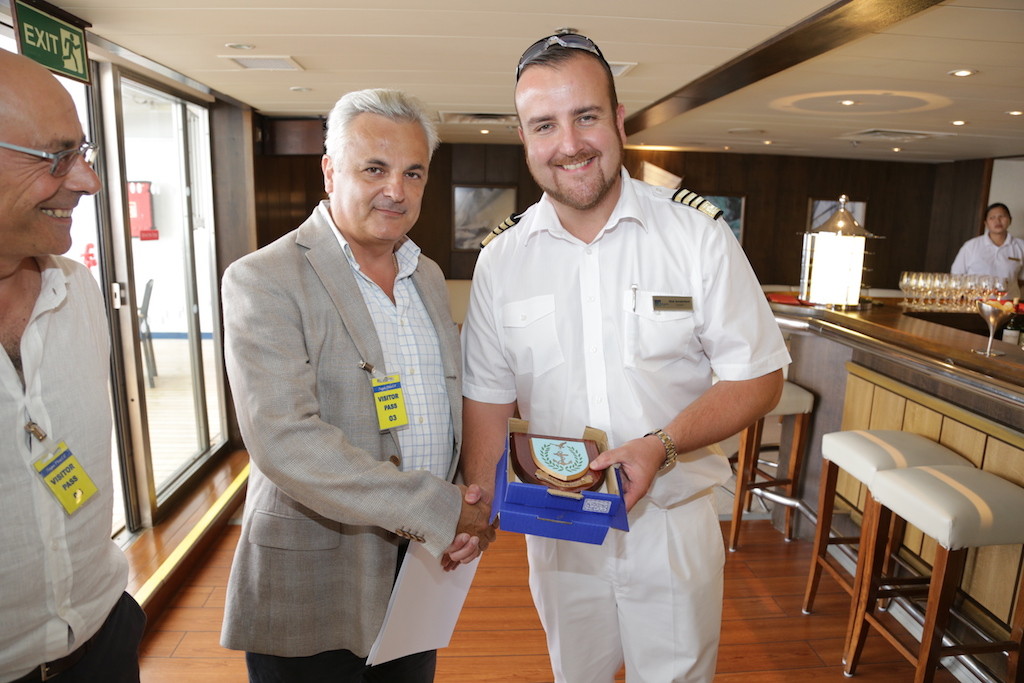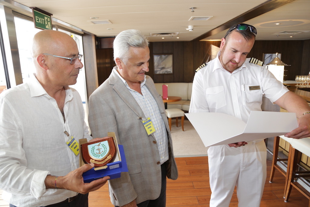 L’amministrazione comunale di Sanremo è stata invitata ancora una volta a bordo di una nave da crociera per lo scambio di convenevoli. Cerimonia questa mattina a bordo della nave da crociera Saga Pearl II che dalle prime luci dell’alba si trova nella rada matuziana.